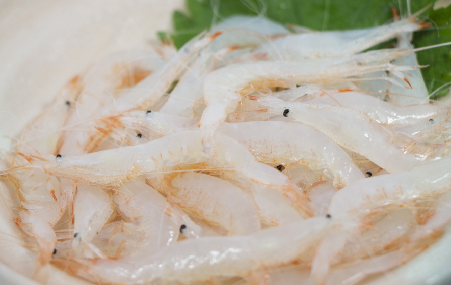 富山湾の名産。オキエビ科に属する一種。 分布 日本海側では富山湾、太平洋側では相模湾・駿河湾に生息。昼間は水深150~300mの海中に浮遊、夜間には水深100mに浮上し明け方に深みに戻る。特徴 体型は左右に平たい。活は体表透明、死ぬと乳白色になるので「シラエビ」の名の由来。体長7㎝位食味は旨い。旬は4月~6月。6月最上。