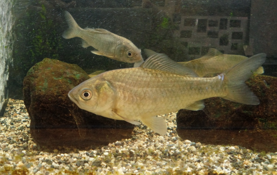 コイ科コイ属の淡水魚。琵琶湖の固有種。名物「 鮒鮓 」は本種。冬は深い所に、春から夏は浅場に移る。産卵の頃湖岸に移動。特徴 体高は低く、体幅は厚く口・頭部は大きく腹緑が角ばっている。体色は黒褐色。最大体長40㎝。産卵は4月~6月。鮒鮓加工・塩漬けは3月~5月。土用の頃塩抜き⇛飯漬け。晩秋以降に完成。 粕漬 けもある。今では源五郎鮒・銀鮒でも加工する。