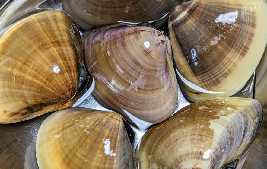 チョウセンとは韓国でなく、江戸時代朝鮮使節団を見てめずらしい国の名を蛤につけた。マルスダレガイ科ハマグリ属の海産二枚貝。分布 日本海側能登半島以西から九州・太平洋側福島以南から九州、外洋の水深20m以浅の砂地に生息。主産地は茨城鹿島灘、千葉九十九里浜、宮崎日向灘が有名。特徴 殻は厚く光沢があり美しい。ハマグリに比べると身は固く味が良く市場価値が高い。旬は10月~4月、2月~4月身も太り美味。国内には朝鮮蛤と蛤の2種類生息。