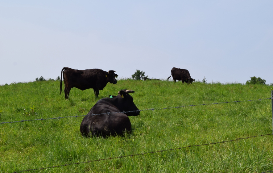 和牛は4種類。① 黒毛 ( くろげ ) 和牛⇛天下一品。世界が認める。国産の生産量の90%。② 褐毛 ( かつげ ) 和牛⇛肉質黒毛に近い。熊本・高知が飼育。③ 無角 ( むかく ) 和牛⇛在来種に英国原産のアミガス種交配。黒毛に比べて早熟。山口県で飼育。④日本短角種⇛在来種に英国原産のショートホーン交配。青森・岩手・秋田各県で飼育。放牧に適す。