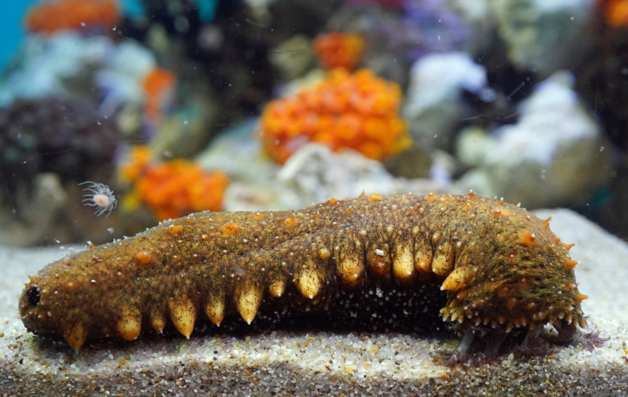 棘皮 動物ナマコ類の総称で日本近海には200種で食用は30種程。分布 本邦では北海道から沖縄に生息、日本海側に多い。 特徴 体は円筒形、背にいぼ状の突起、腹側に沢山の管足を持ちはい回る。真海鼠には赤(アカコ)、青(アオコ)、黒(クロコ)の3種類。※赤海鼠→外洋の岩礁域、身筋が軟らかく関西人好み。※青海鼠→内湾の砂泥底に棲み、身筋は固く、関東人好み。※黒海鼠→身筋が固い。旬は12月~2月。