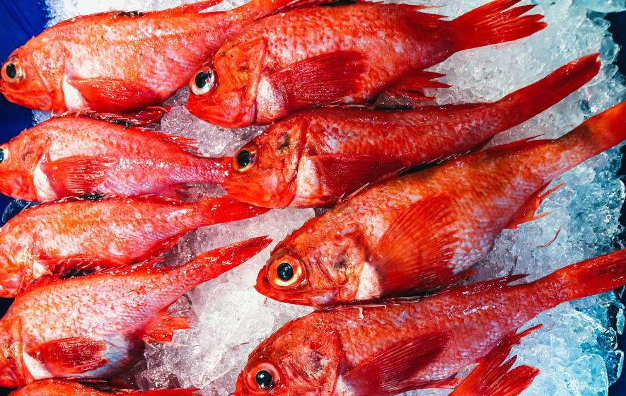 高級魚。大きな目全身朱色の深海魚。キンメダイ科の海産硬骨魚。分布 日本海側では新潟以西、太平洋側では茨城以南より沖縄にかけて生息。若魚は水深100~250m、成長と共に水深800mに移動。成長は遅く3年で30㎝、5年で37㎝。成魚には8年50㎝もかかる。最大体長60㎝寿命は14~15年。主場は伊豆諸島・高知・長崎、脂肪が多く水分の少ない魚。旬11月~3月。