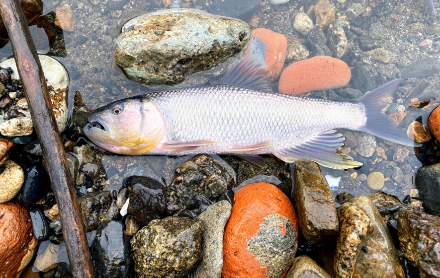 ハスは琵琶湖淀川水系と福井県三方湖が原産。全国に放流するが生存は困難。コイ科ハス属の淡水産硬骨魚でコイ科では珍しく食性は魚類。特徴 体は側扁し細長く成長するにつれ頭部は大きく、口はへの字状に曲がる。体色は背面は青みを帯び、体側と腹側は銀白色。成長は1年で6㎝、3年で18㎝、最大体長30㎝に達する。産卵は5月下~8月中。旬は5月~8月。若い活ハスの背越は美味。