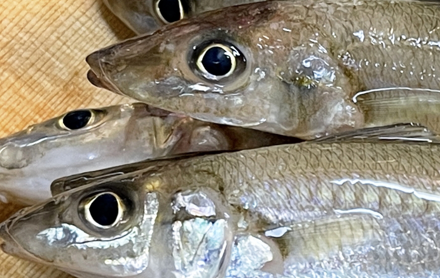 キスには白キス(灰白色)と青キス(淡青色)の二種類で「白キス」が美味。キス科に属する海産硬骨魚。分布 北海道から沖縄迄の沿岸の浅海の砂泥底に棲む。特徴 体型は円筒形で口は小さく優雅な姿。最大体長30㎝。1年物13㎝位は天婦羅、2年物20㎝はお造り、焼物。冬は沖に移動し味は落ちる。産卵春3月~4月、秋9月~10月の2回。旬は5月~9月。