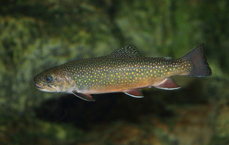 サケ科イワナ属の淡水産硬骨魚。冷水域を好む。原産地は北米・カナダで日本には1901年(明治34年)日光湯ノ湖に移入。以降各地に放流。特徴 体は側扁し口は大きい。体色は暗褐色に黄と赤の斑点が散在。最大体長80㎝。通常は15~30㎝。餌は水中昆虫・落下昆虫・小魚など。産卵は11月~12月。旬は5月~9月。イワナ属では最も美味。