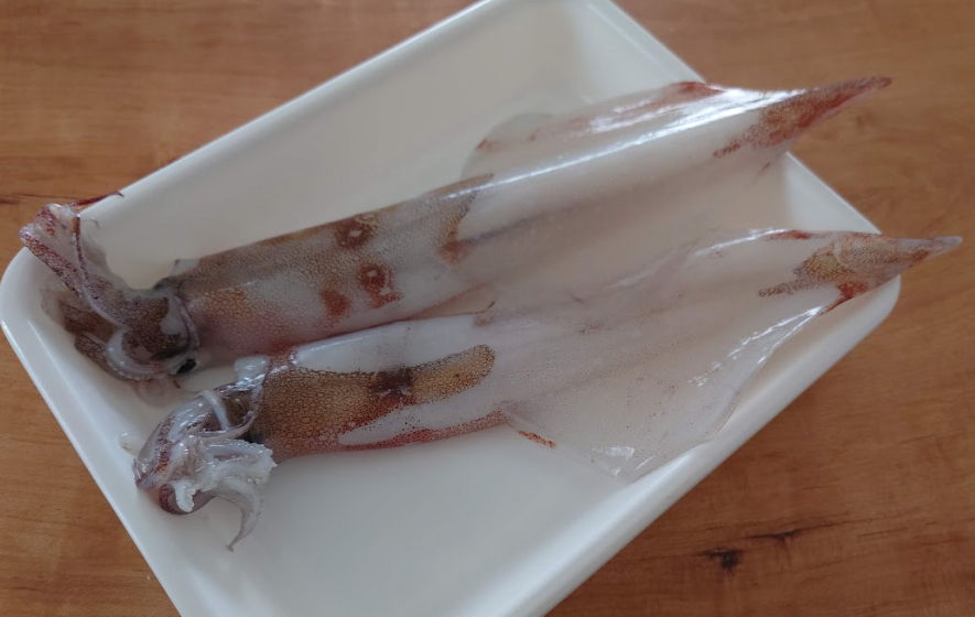特徴 胴体は細長く円錐型で通常は透明性の体色。興奮すると茶褐色になる。 外套 の長さは40㎝に達する。オスとメスではオスが大きく、オスの外套は30から37㎝、メスは20から30㎝。身は軟らかく甘味があり、春に産卵し1年で寿命終える。旬は11月より3月。