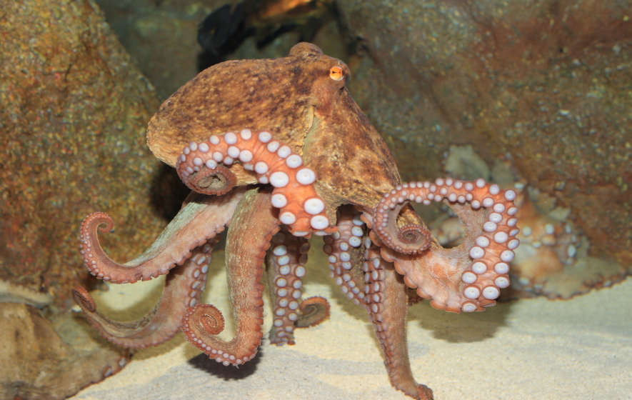 体色は海中のでは灰褐色・赤褐色などしているが環境により変る保護色で擬態もする。