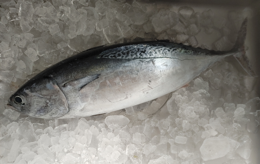 最大体長60㎝に達する。水揚げは40㎝。めまわりは1.5㎏程の物が多く、土佐沖の初カツオより小形。美味である。