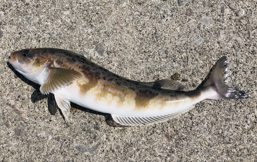 特徴 体型はやや長くやや側扁し、アイナメに良く似ている。体色 背の方は黒褐色をおび、黄色の斑点があり、腹部は灰白色。最大体長60㎝に達する。大型で30から40㎝のタラバホッケは開き用に加工する。中型の24㎝位をハルボッケという。小型は20㎝以下1年魚をロウソクボッケという。中・小型は主に練り製品。ホッケの糠漬けは小型使用する。産卵期は秋⑽から冬⑿で岩のくぼみにメスを誘い、産卵をさせ卵塊はメスが守る。