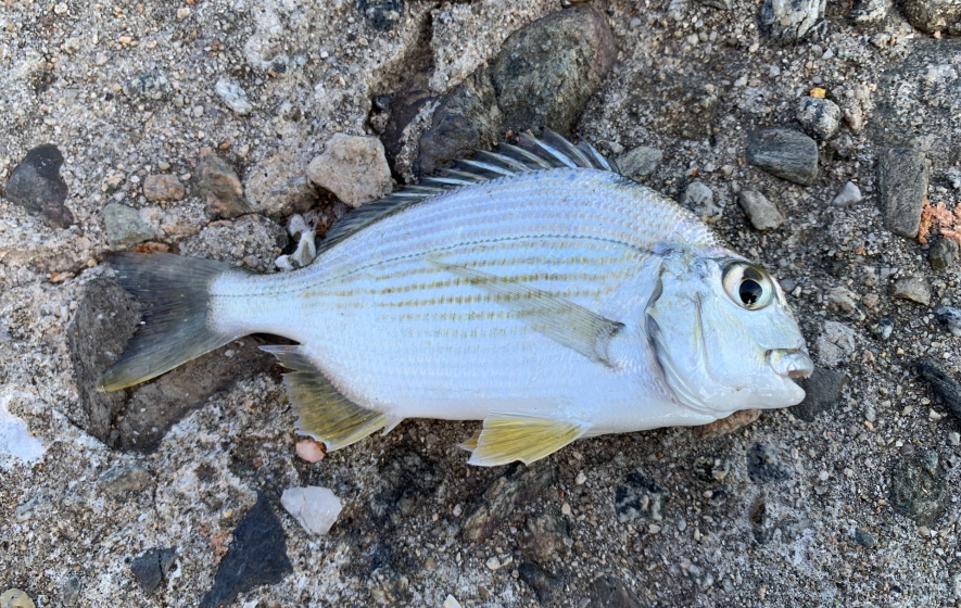 特徴 体は楕円形で側扁し、体色は灰褐色で腹ビレ 尻ビレ 尾ビレが鮮黄色で判別できる。黒ダイと同じで雌・雄同体である。