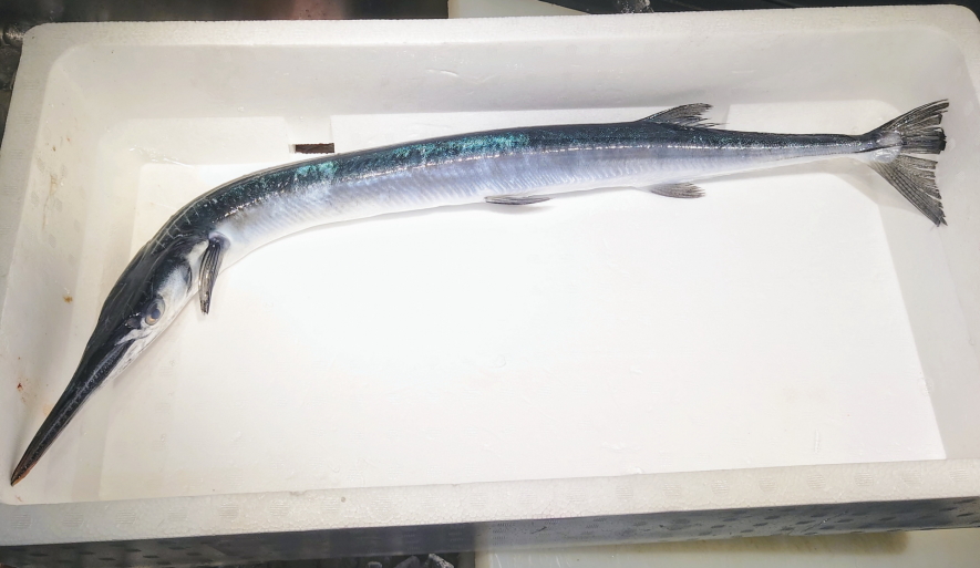 特徴 体はサヨリに似ており大型で口が尖って歯が鋭く、漁師の危険視する魚。体色は背部が青緑色、腹部は灰白色をなしている。
