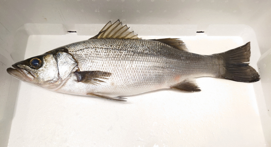特徴 体は長くスマートで側扁し、口は大きく頭部の主 鰓蓋骨 には強く2棘がある。鱗は細かい。体色 背部は黒っぽい銀白色で体側から腹部にかけ銀白色。若魚の体側の上半分に小黒点が散在するが成魚になると消失する。鱸は出世魚で成長と共に名前が変る。