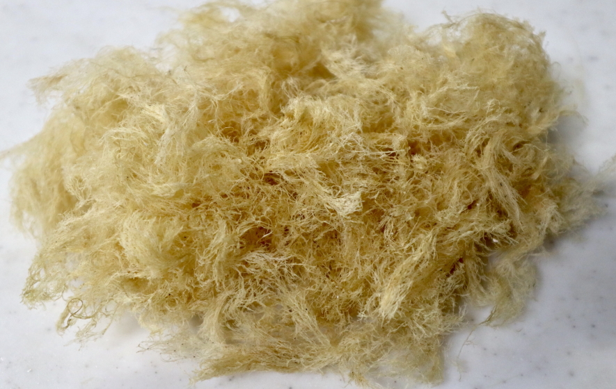形状 体長10~30㎝、全体はやや平たく無数に枝分かれし細く先端は尖っている。色は暗紅色で夏に採取し水に晒し、天日乾燥させること4~5回繰り返し、退色して乾燥させた製品をサラシテングサと称しトコロテンや寒天菓子などに利用する。