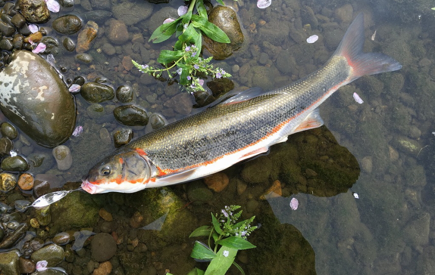 産卵期を迎えると婚姻色は頭部下方から体の腹側にかけ一条赤色の帯が出現する。産卵に向け 遡上 ( そじょう ) 。春4月から5月に産卵する。
