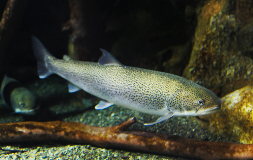 体色 背は褐色で体側は銀白色。腹は白色で背と体側に無数の小黒斑がある。体長は1m以上に成長する。記録では十勝川で1937年(昭和12年)に2.1mが残っている。