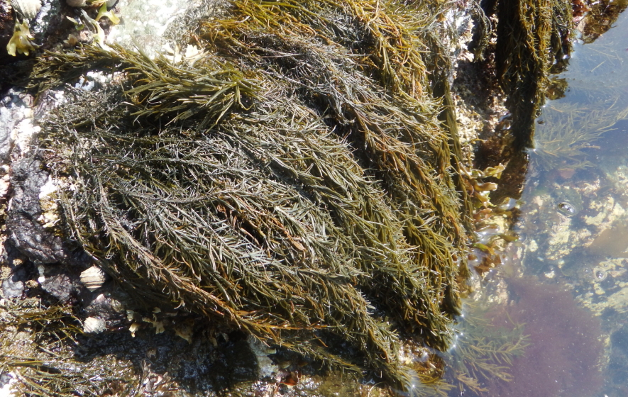カラフト・北海道以南より三陸沿岸、千葉県犬吠埼まで分布。外洋の潮間帯の中層の岩上に生える。