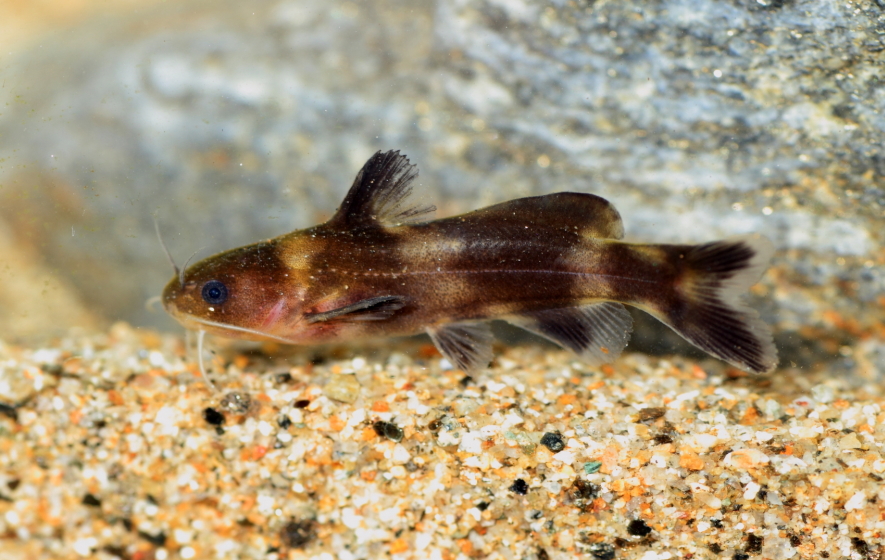 ギギ科キバチ属の淡水硬骨魚で和名ギギは胸鰭の棘でギーギーと音を出すから。別名ハゲギギは頭部の皮フが薄いことに由来する。棘に刺されると痛い。