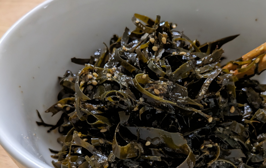 生は刻んで湯通しし冷して、醤油・酢醤油で味をととのえ海藻とろろとなる。