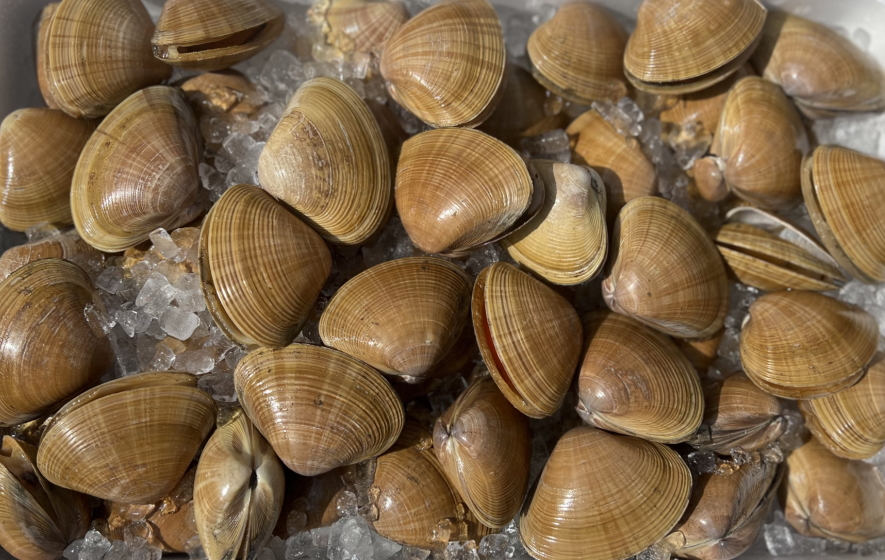 時候 晩冬(1月)~晩春(4月)マテガイ科に属する二枚貝。関西ではカミソリガイ、和名マテガイ。詳しくはマテガイの頁参照。