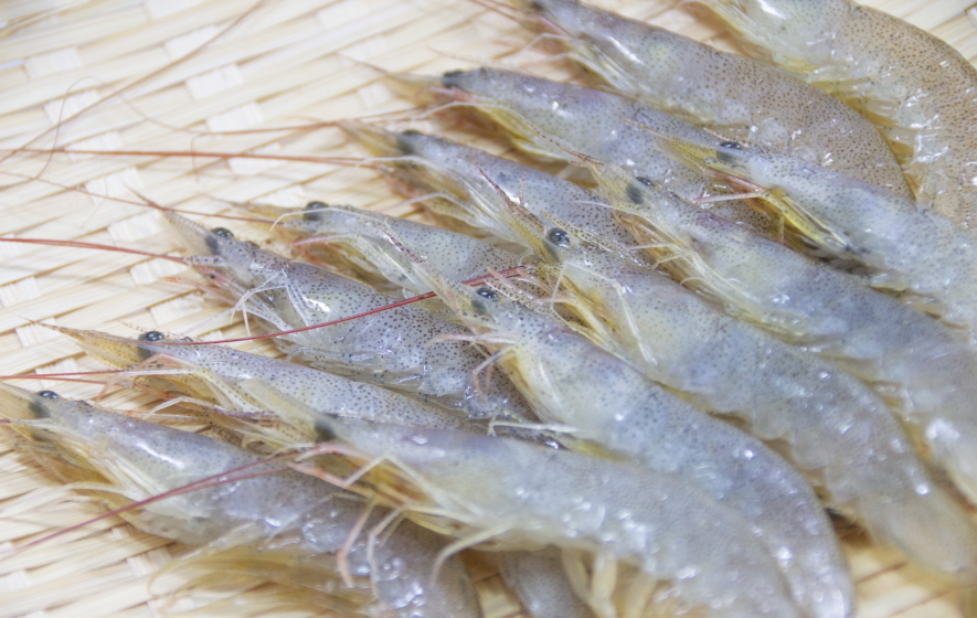 特徴 クルマエビより小さく殻の表面がザラザラしている。体色は淡灰色で淡藍色の小斑点が散在し、ヒゲが赤色をしている。
