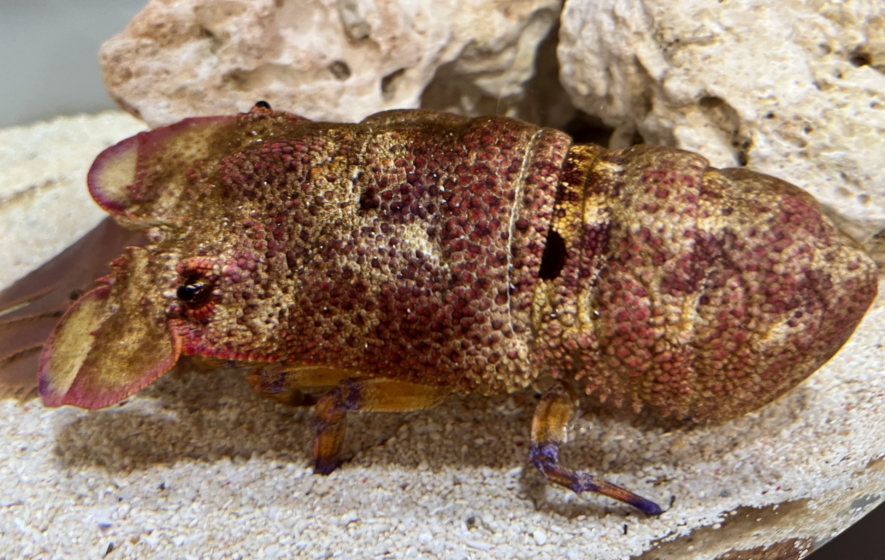 特徴 団扇海老同様扁平し、頭胸部は縦長の四角形をして姿形はセミを思わせる。