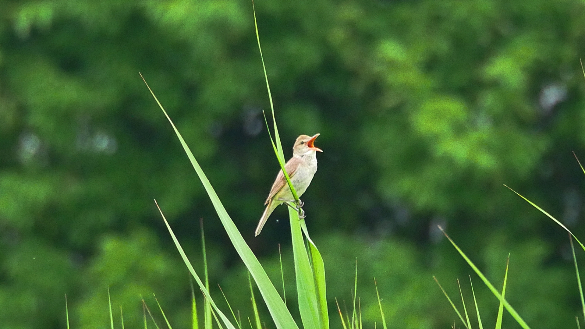 「渡り鳥」、鶯より少し大きい。夏の沼や沢、川辺の葦の中に群棲する。うるさく鳴き 囀 る。
