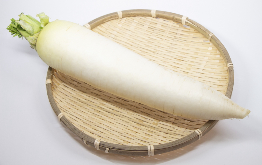 アブラナ科ダイコン属の一・二年草。尾張大根を代表する品種。名称は現愛知清須市春日宮重町の産地名。 方領 大根と 華 北 大根(青首)の交雑種。江戸時代初期より栽培。大名献上し有名になる。 特徴 頸部 は緑色と白色の2種類。長所は肉質が滑らかな甘み。短所は抵抗力がなく「病気」と「す」が入るのが欠点。純正宮重大根は1945年(昭和20年)以降に需要減で一度消滅。1992年(平成4年)宮重大根種子保存会設立。育成に励む。昔の宮重に近づいている。宮重大根を基に青首大根・京野菜聖護院大根を育成。旬は11月〜1月。