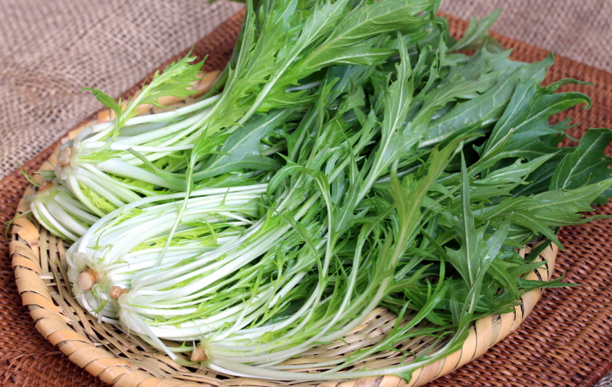 アブラナ科アブラナ属の一年草。日本固有種。京の伝統野菜。江戸時代『 雍州府 志 』(1686年)に京都東寺九条周辺で 畝間 に水を入れ栽培、「水菜」と呼んだとの記載。後に各地に伝わり、地方では「京菜」と呼ぶ。特徴 葉の緑には深い切れ込み、味は淡白で、浅漬け・はりはり鍋・焼松茸には若水菜・サラダに用いる。今日では水耕栽培が主で、周年出回る。旬は11月〜2月。