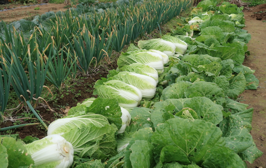 アブラナ科アブラナ属の一・二年草。白菜には「不結球」・「半結球」・「結球」の3群。わが国は「結球群」で、原産地は中国山東半島。幕末に導入。日清戦争(明治27年)後に日本兵が持ち帰り品種改良を行う。大正時代に 中生 種「仙台白菜」(松島群)、 早生 種「愛知白菜」(野崎群)、 晩生 種「加賀白菜」が出来る。以後3群を組合せて新品種輩出。主力品種「霜降り白菜」内部は黄芯型で霜が当ると甘くなる。種子は「一代雑種F1」。秋冬採りの他に春採り、夏採りがある。※早生種(60〜80日で収穫)。※中生種(70〜90日で収穫)。※晩生種(100〜120日で収穫)。旬は11月〜2月。