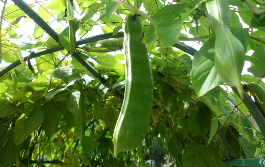 マメ科ナタマメ属の一年草。原産地は熱帯アジア。日本へは江戸時代初期の渡来。莢の形が 鉈 に似ているのでこの名がある。蔓は長く初秋の頃、大きな 扁平 の莢ができる。長さ30㎝幅5〜6㎝。 嫩 い莢は煮て食べるが臭味があり、旨くない。味噌漬けにすると旨い。その他に「福神漬け」。時期は8月〜9月。