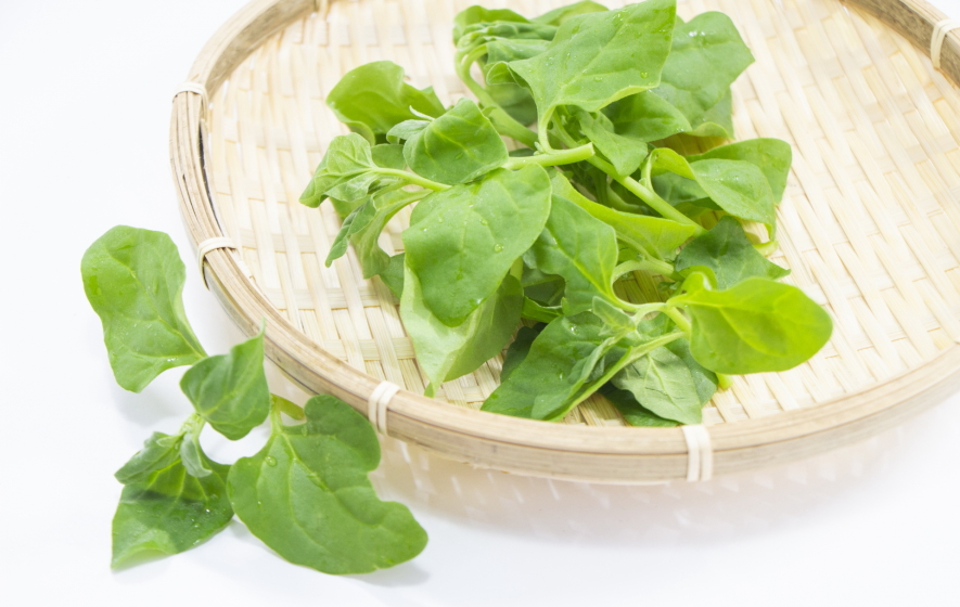 ツルナ科ツルナ属の多年草。本邦では本州中部から、四国・九州の海辺・砂地に多く自生。畑で栽培する蔓性の 蔬菜 (野菜)。茎の高さは20〜60㎝。葉は三角状卵形で互生。茎と共に多肉質。若苗の中を摘み取る。別名「浜萵苣」。旬は6月〜9月。