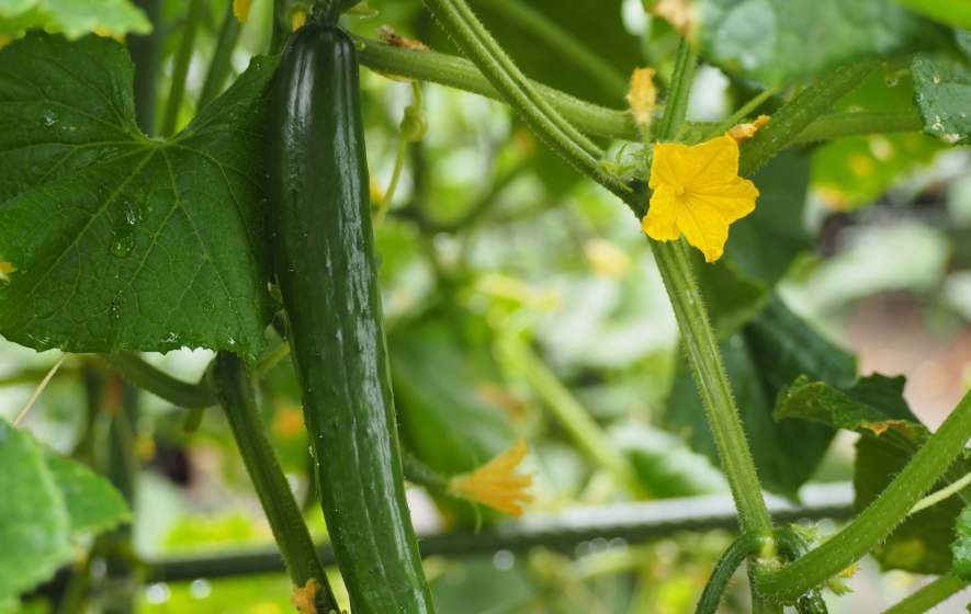 ウリ科キュウリ属一年生蔓草。原産はヒマラヤ山脈南部山麓。日本へは10世紀頃に渡来。名は胡(西域)から来た 瓜 。完熟すると黄色(黄瓜)に由来。定着は江戸時代末で、明治の末期に露地栽培が盛んになる。「胡瓜」の品種は多い。主は華南型(黒いぼ、果皮は堅く、春胡瓜)と華北型(白いぼ、果皮が薄く、歯切れが良く、夏胡瓜)で、流通の9割が「白いぼ胡瓜」で、ブルーム(果粉)から見た目に美しいブルームレスが主流。戦後温室栽培が盛んになりカボチャの台木に接ぎ木をあみ出し、白いぼの周年供給が可能になる。「諸胡瓜(黒いぼ)」。旬は6月〜9月。盛りは7月〜8月。他に「花丸胡瓜(花付胡瓜)」・「葉付胡瓜」が採れる。