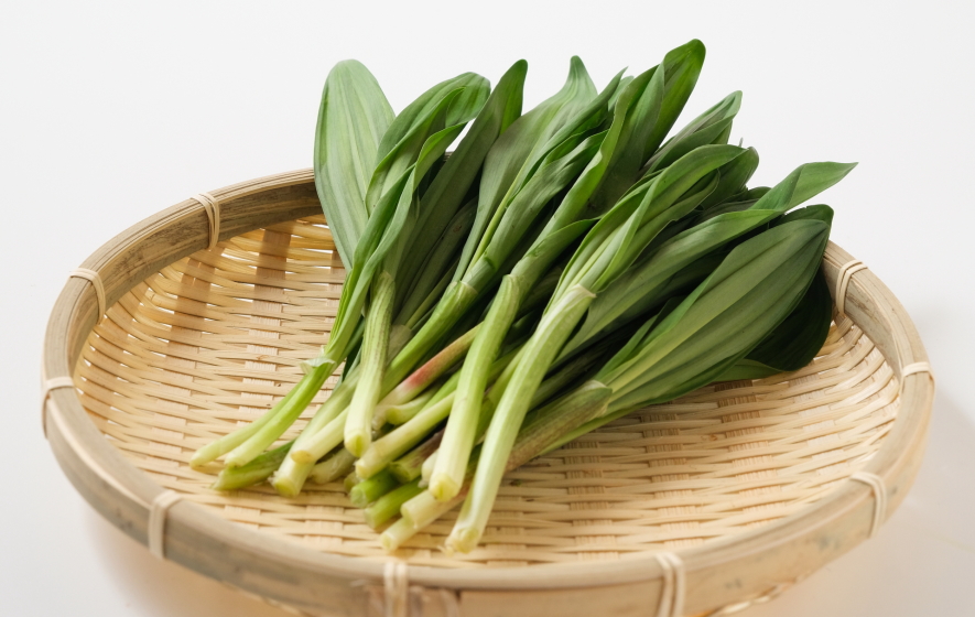 ユリ科ネギ属の多年草。名の由来は山岳信仰の行者が栄養源に摂取したので、この名がある。北海道・東北・新潟・長野など高原や深山に自生。葉は長楕円形で2枚、全体は緑色で茎の部分が赤色。ニンニクの匂いが強く、貴重な山菜で、生育期間が7〜8年と長く、生長が非常に遅い。旬は晩春から初夏4月〜5月。