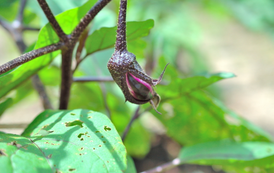 ナス科ナス属の一年草。小茄子は長さ8㎝重さ30g以下。果実は丸形濃紫色。種子が少ないのが特徴。代表は「もぎ茄子」と「 民 田 茄子」。「もぎ茄子」は京の伝統野菜。幕末から明治初め在来種の中より早生で肉質が締まり、果重20g程度の小茄子が偶然生まれる。揚げ物・煮物など利用価値が高い。収穫は3月〜6月。「民田茄子」は鶴岡市民田地域で20g程度。皮はやわらかく肉質が締まり歯触りは格別。辛子漬け・粕漬けに良い。その他山形の品種に「 薄皮 丸 小茄子」・「 出羽 小茄子」 「 梵天 丸 小茄子」がある。旬は7月〜9月。
